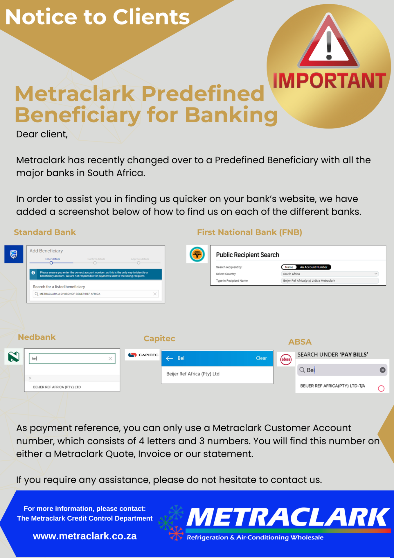 Metraclark is the largest, best known and most trusted supplier of quality, efficient refrigeration and air-conditioning components and systems throughout Southern Africa.