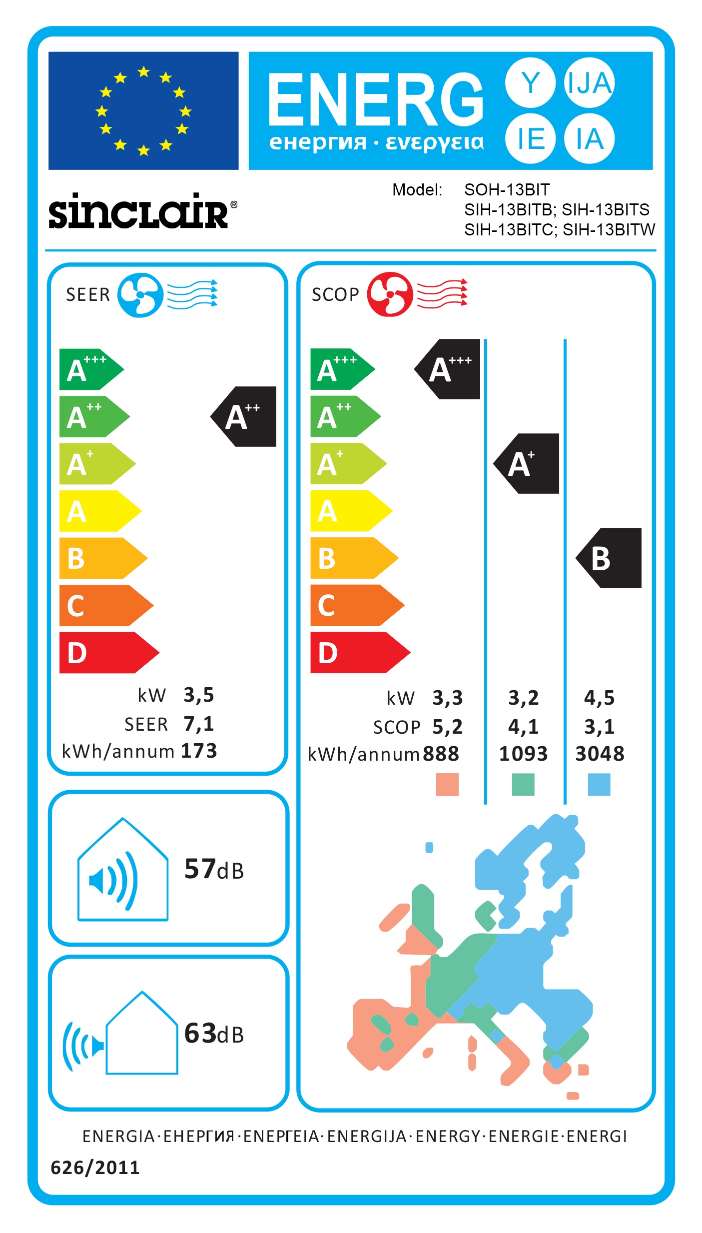 | Energy Label (Heating) : | A+++/A+/B |
