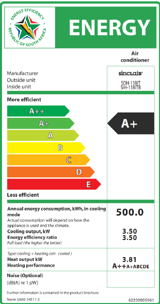 SUH13BITB Sinclair Terrel Inverter 13000 BTU R32 Black H/Wall Split